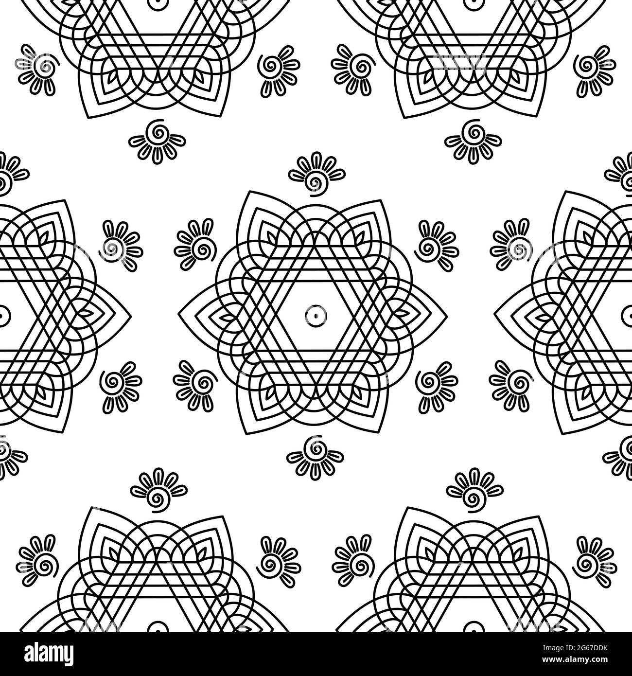 Indian Traditional And Cultural Rangoli Or Kolam Design Concept Of Curved Lines And Dots Isolated On White Background Is In Seamless Pattern Stock Vector Image Art Alamy