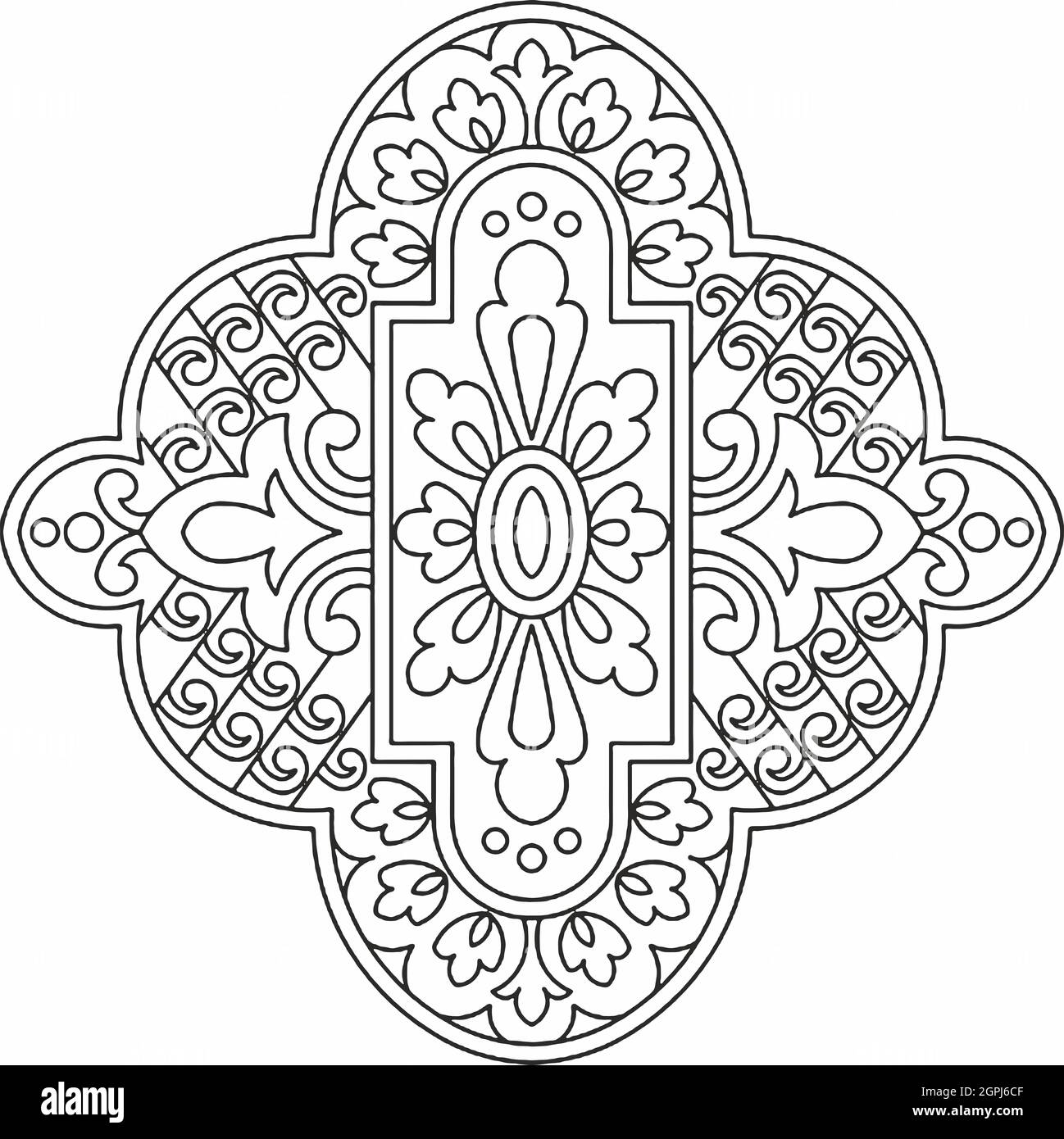 Indian Traditional And Cultural Festive Rangoli Mandala Design Concept Of Floral Art Isolated On Black And White Background Stock Vector Image Art Alamy